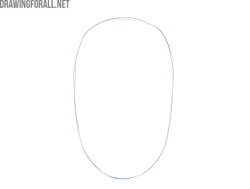 So, we start this guide on how to draw a face easy. If you are our regular reader, you probably know that we love to represent complex drawings in the form of simple geometric shapes. Therefore, in this step, we will draw a large, elongated shape that resembles an oval. If you are drawing a portrait, place this shape in the center of the piece of paper.