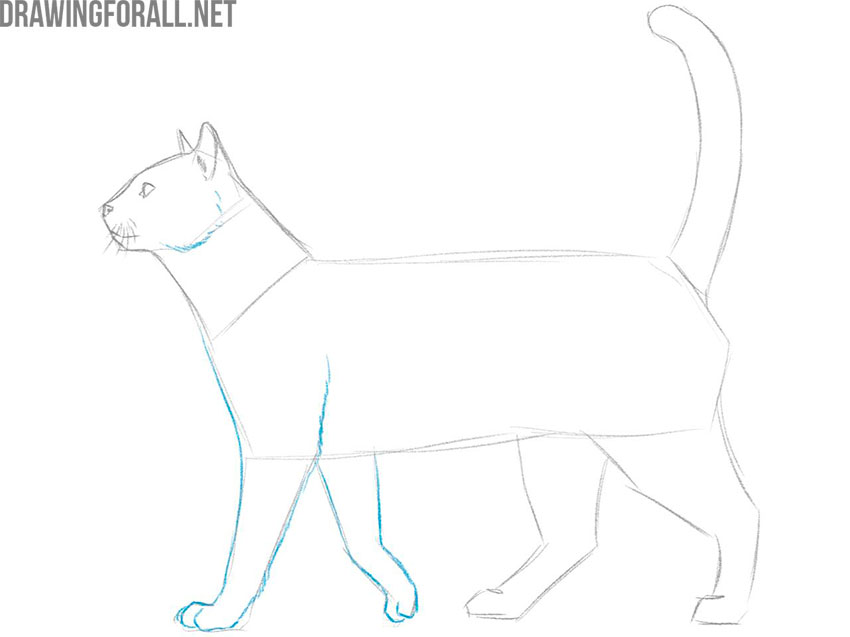 Repeat the steps from the previous step with only the hind legs of this beautiful cat. Make smooth contours of the back and abdomen as in our sample.